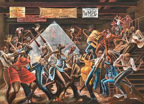 The canvases were some forty feet wide and a good fifty feet apart. They depicted groupings of Amerindian persons engaged in a sacred ritual.