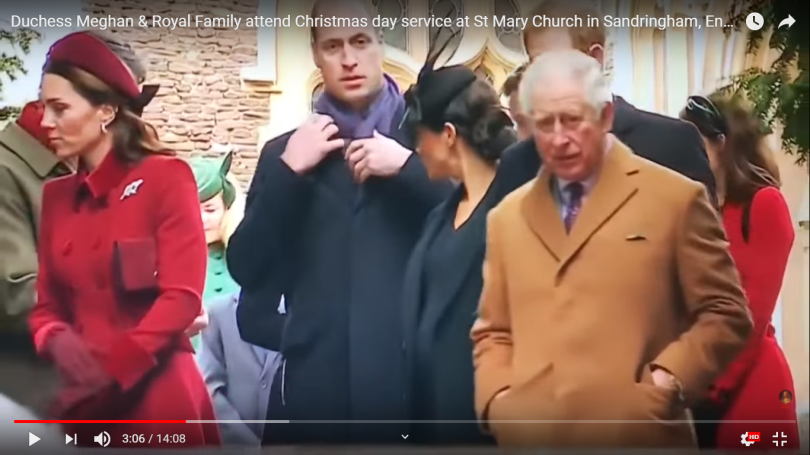 William makes no effort to disguise his revulsion at Meghan when she turned around to say something to him, whereupon he simply stepped back and scowled as though he smelt shit. By this point, Christmas Day, 2018, Meghan is pregnant with Prince Archie and she and Harry had completed their first royal tour which proved a success. Also, by this point, William and Catherine had planted the character assassinating story with Camilla Tominey, in the Daily Telegraph, in which she speciously alleged that Meghan had made Catherine cry. The reason for doing this, is that no matter what, the principal royals, who are in line to be sovereign and heir with their spouses, are never faulted for anything and will be defended to the hilt. Thus, it was the perfect coup, Meghan is marrying in, she is both a Yank & Black, which made her even more otiose and dangerous than Wallis Simpson.