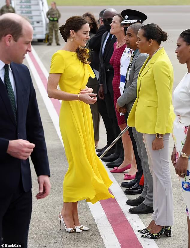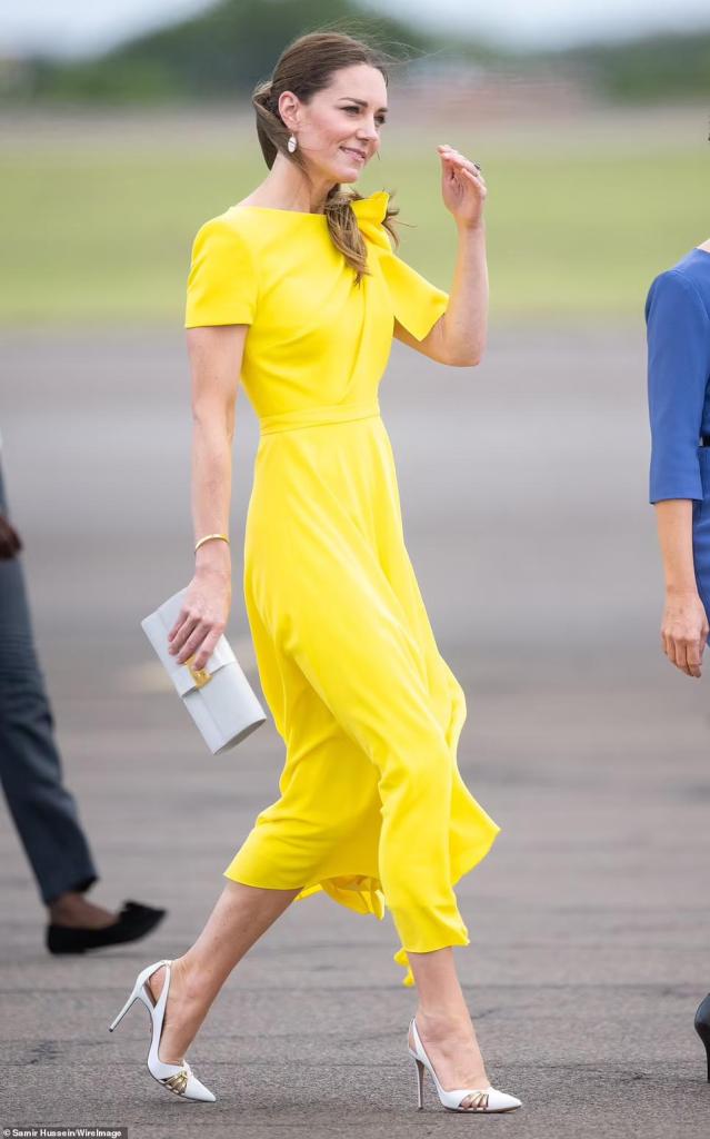 And then, Catherine, HRH Duchess of Cambridge deplaned in Kingston, Jamaica and Sol shone as never before. This Jamaican trip has been an absolute watershed moment. I am always pleased to see Catherine at those three times of year as previously stated multiple times on this blog. This radiantly yellow Roksanda dress was the most uplifting experience imaginable. The moment I saw that shocking yellow, I yelled triumphantly, ‘Go on Girl!’